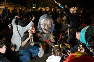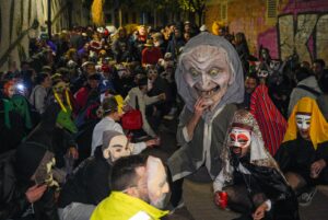 Ha arribat el moment de treure tota la vostra creativitat! Rieu, balleu, jugueu, emprenyeu i molesteu! Aquesta nit és el món de l’inrevés. El ric es torna pobre i el pobre es torna ric, el vell es torna un nen petit i el jove s’arrossega per terra. L’home i la dona es disfressen i difuminen en un joc d’ombres i llums etern que s’apodera d’Olesa.